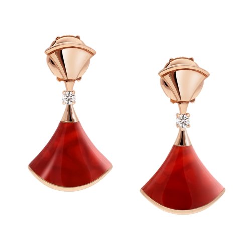 BVLGARI/宝格丽DIVAS'DREAM系列 18K金玫瑰金镶红玉髓与钻石 小扇子耳坠 356749