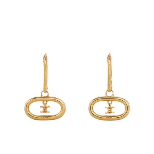CELINE/赛琳 MAILLON TRIOMPHE系列 金色黄铜镂空圈形凯旋图案耳环46X556BRA.35OR