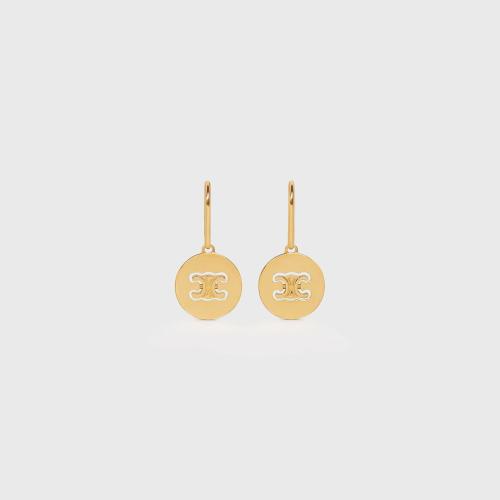 CELINE赛琳思琳 22年秋冬 女士 耳环 TRIOMPHE SWIVEL金色饰面黄铜耳环 46Y926BRA.35OR
