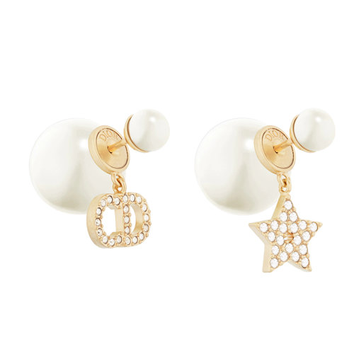 DIOR/迪奥 22新款DIOR TRIBALES系列 女士白色饰CD字母徽标星星吊饰圆珠镶嵌珍珠耳环耳钉E1038TRICY_D03S