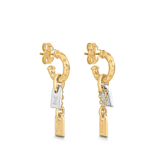 Louis Vuitton/路易威登 22春夏新款NANOGRAM系列 金色/银色双色金属镂刻老花图案装饰银色吊饰耳环M00607