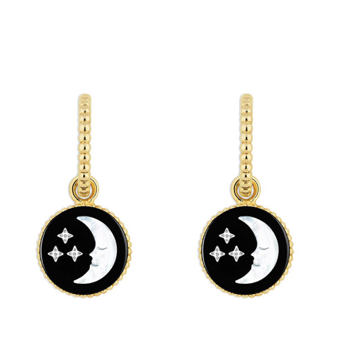 DIOR/迪奥 新款高级珠宝ROSE CéLESTE系列 18K金镶嵌钻石珍珠母贝和玛瑙 日月交替可翻转双面耳环 JSAM95009_0000