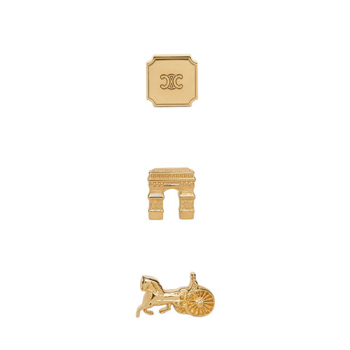 CELINE/赛琳 SEPARABLES HERITAGE系列 金色饰面黄铜耳钉套装46W766BRA.35OR