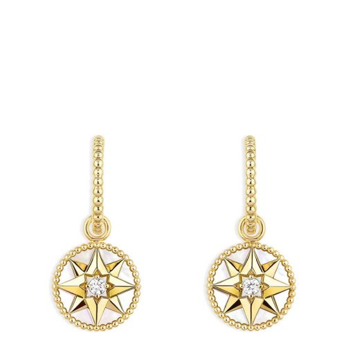 DIOR/迪奥 明星同款ROSE DES VENTS 八芒星镶嵌钻石珍珠母贝黄金耳环 JRDV95057_0000