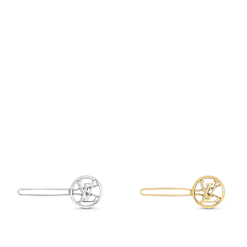 Louis Vuitton/路易威登 22春夏新款BABY LOUISE系列 金色/银色抛光金属镂刻徽标双色发夹M00590