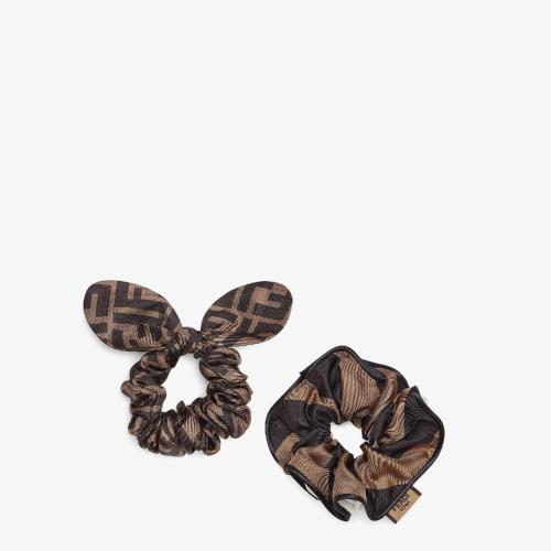FENDI芬迪 22年秋冬 女士 发带 棕色桑蚕丝松紧发带两件套 FXT268ADG0F1BWS