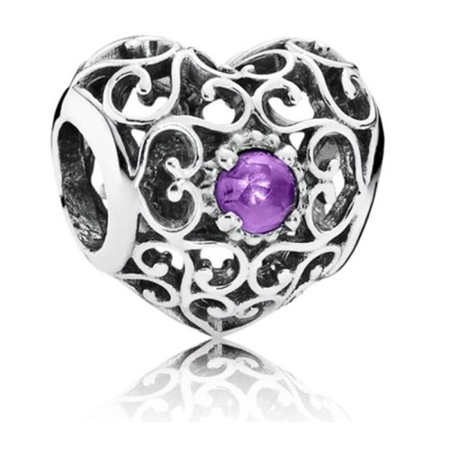 PANDORA/潘多拉 女士浅紫色宝石爱心镂空生辰珠之二月串珠 791784SAM