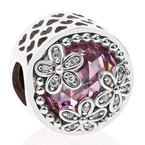 PANDORA/潘多拉 女士粉色925银时尚雏菊银/锆石镂空串珠 792055PCZ