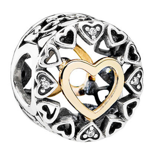 PANDORA/潘多拉 女士银色14k金与925银爱之圆DIY手链珠子串饰串珠 792009CZ