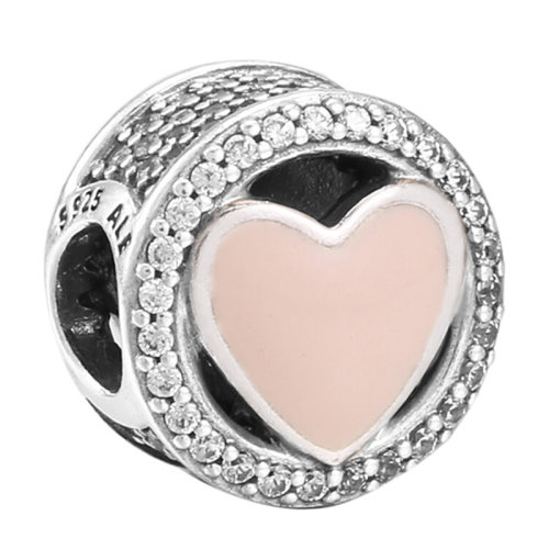 PANDORA/潘多拉 女士乳白光晕粉色闪亮的心女士串珠吊坠 791725NOP
