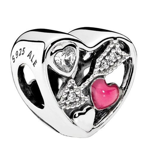 PANDORA/潘多拉 女士银色/粉色925银+锆石丘比特之箭925银心形DIY手链珠子串饰串珠 792039CZ