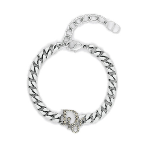 DIOR/迪奥 22新款 男士银色镀银黄铜镶嵌灰色水晶字母链式手链B1669HOMMT_D005
