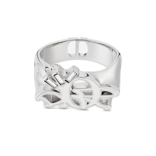 DIOR/迪奥 22新款 男士银色镀银黄铜镶嵌白色水晶镂空CD字母戒指R1180HOMMT_D007