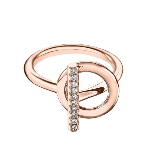 HERMES/爱马仕 经典Echappée Hermès系列 小号18K金玫瑰金镶钻棍状戒指指环H219691B