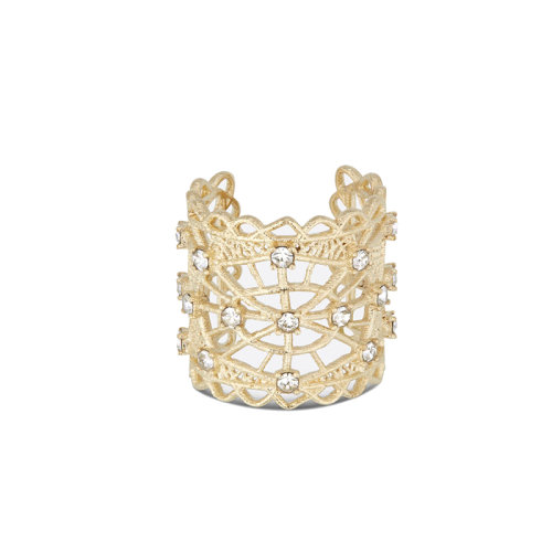 DIOR/迪奥 22新款D-RENAISSANCE系列 女士金色饰面金属饰水晶镂空蕾丝效果戒指R1291WOMCY_D03S