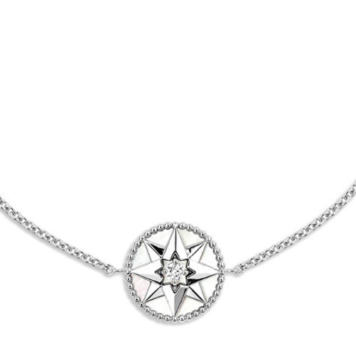 DIOR/迪奥 明星同款ROSE DES VENTS 八芒星镶嵌钻石和珍珠母贝釉漆白金手链 JRDV95022_0000