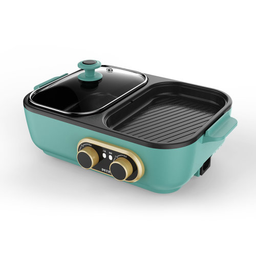 PETRUS/柏翠 PE2320多功能涮烤一体锅家用迷你小火锅不粘易清洗旋钮独立控温森林绿