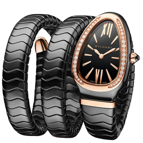 BVLGARI/宝格丽 镶有钻石的18 K金玫瑰金表圈和黑色陶瓷双螺旋表链 黑色烤漆表盘和表壳 SERPENTI SPIGA石英手表 35毫米102885