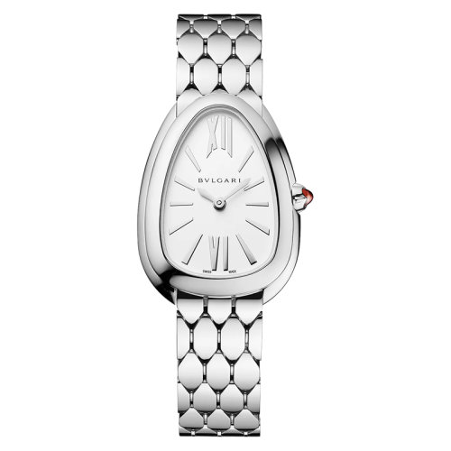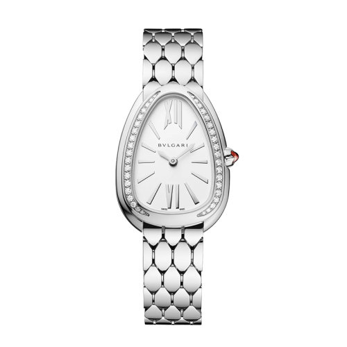 BVLGARI/宝格丽 Serpenti系列镶钻款精钢表壳表链银白色表盘水滴形手表 33毫米