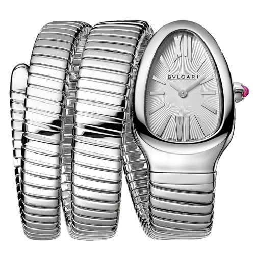 BVLGARI/宝格丽 不锈钢双螺旋表壳和表链 银色乳白色表盘 SERPENTI TUBOGAS石英手表 35毫米B101911