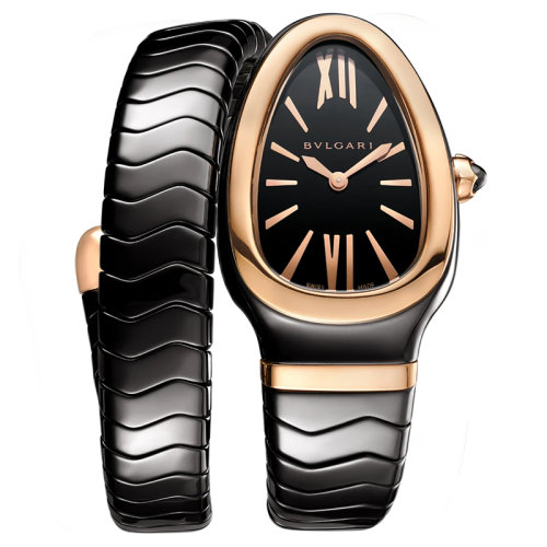 BVLGARI/宝格丽 黑色陶瓷表壳和单螺旋表带 18K金玫瑰金表圈 黑色烤漆表盘 SERPENTI SPIGA石英手表 35毫米102735