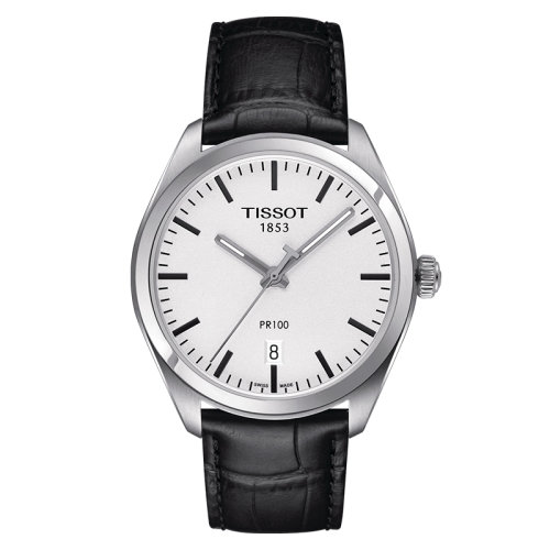 TISSOT/天梭 PR100系列精钢表壳黑色皮革表带男士石英腕表 39毫米