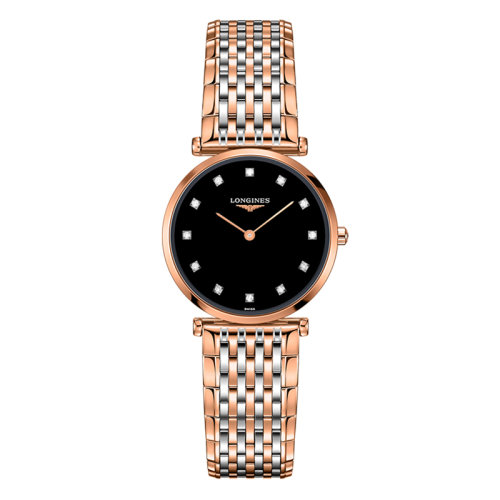 LONGINES/浪琴 嘉岚系列 石英表镶钻黑盘粉红PVD表壳粉链男女同款表29毫米L4.512.1.57.7