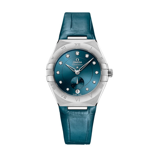 OMEGA/欧米茄 22年春夏新款 星座系列 女士蓝色表盘自动上链同轴机芯精钢表壳皮表带腕表34毫米131.13.34.20.53.001