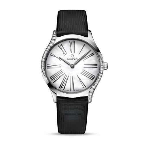OMEGA/欧米茄 碟飞系列 名典 精钢 表壳镶钻 织面皮带 石英机芯 女士腕表 428.17.36.60.05.001