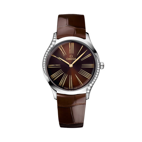 OMEGA/欧米茄 22年春夏新款 碟飞系列 女士棕色表盘石英机芯精钢表壳皮表带腕表36毫米428.18.36.60.13.001