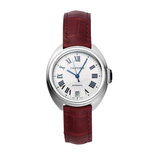 CARTIER/卡地亚 钥匙系列精钢表壳酒红色鳄鱼皮表带女士自动机械腕表 35毫米