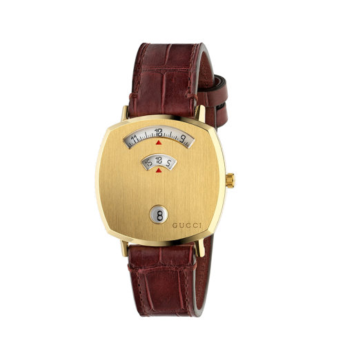 GUCCI/古驰 古驰Grip系列黄金PVD表壳配以鳄鱼皮表带腕表,35毫米