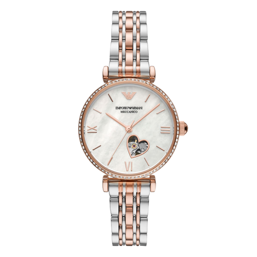 Emporio Armani/安普里奥阿玛尼 钢制表带欧美表 心形镂空轻奢贝母女士机械腕表 生日礼物送女友 AR60049