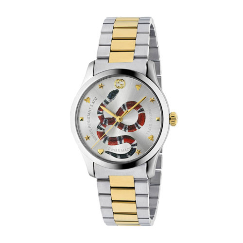 GUCCI/古驰 古驰G-Timeless系列钢质表壳配彩色蛇纹银色表盘以及精钢表链和黄金PVD的腕表,38毫米