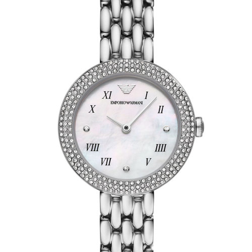 Emporio Armani/安普里奥阿玛尼 皮革表带 轻奢贝母欧美表镶钻石英女士腕表 生日礼物送女友 AR11459