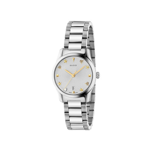 GUCCI/古驰 古驰G-Timeless系列女士钢质表壳配银色扭索纹表盘和精钢表链的经典腕表,27毫米