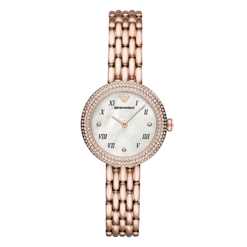 Emporio Armani/安普里奥阿玛尼 Rose玫瑰小圆盘满钻个性休闲钢带欧美表女士腕表 生日礼物送女友 AR11355