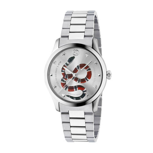 GUCCI/古驰 古驰G-Timeless系列钢质表壳配以彩色蛇纹银色表盘和精钢表链腕表,38毫米