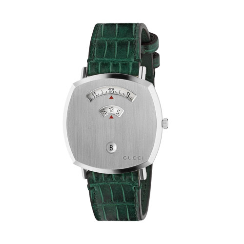 GUCCI/古驰 古驰Grip系列精钢表壳配以绿色鳄鱼皮表带的腕表,38毫米
