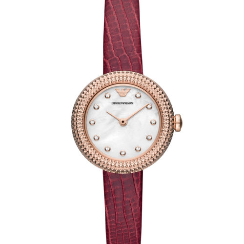 Emporio Armani/安普里奥阿玛尼 文淇同款酒红色皮革表带欧美表时尚女士腕表 生日礼物送女友 AR11417