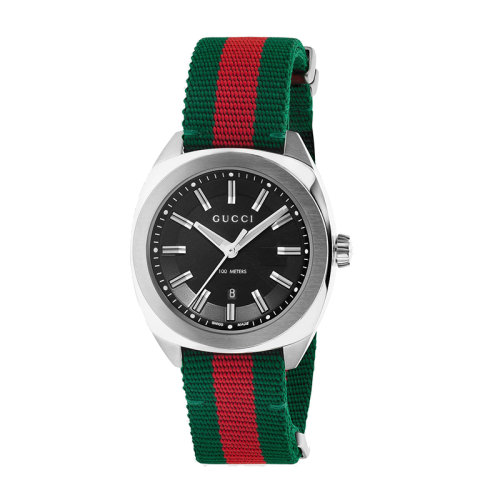 GUCCI/古驰 古驰GG2570系列钢质表壳配以黑色磨砂表盘以及绿色和红色织带的尼龙表带腕表,41毫米