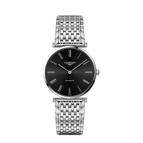 LONGINES/浪琴 嘉岚系列新款精钢黑色表盘自动机械男士腕表36毫米L4.908.4.51.6