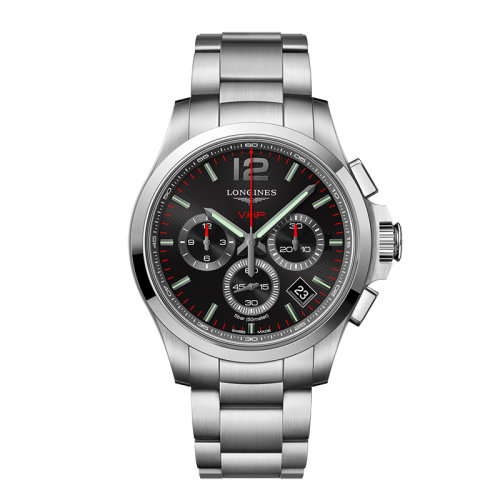 LONGINES/浪琴 康卡斯VHP系列 石英表精钢表壳钢链黑盘男表42毫米L3.717.4.56.6