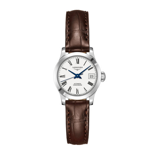 LONGINES/浪琴 黛绰维纳系列 女士银色自动机械精钢表壳和鳄鱼皮表带腕表27.7X43.8毫米L5.757.4.73.0