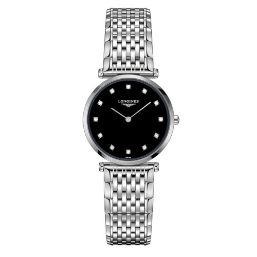 LONGINES/浪琴 嘉岚系列 石英表镶钻黑盘精钢表壳钢链男女同款表29毫米L4.512.4.58.6