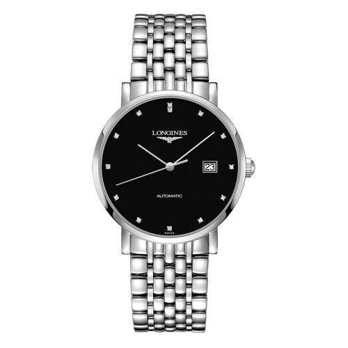 LONGINES/浪琴 博雅系列 自动机械表镶钻黑盘精钢表壳表链男表39毫米L4.910.4.57.6