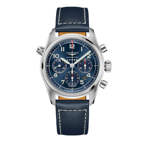 LONGINES/浪琴 先行者系列 男士蓝色太阳饰纹自动机械精钢表壳和小牛皮表带腕表42毫米L3.820.4.93.0