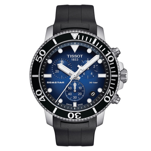 TISSOT/天梭 海星潜水1000系列 男士渐变蓝表盘石英机芯橡胶表带和不锈钢表壳腕表45.5毫米T120.417.17.041.00