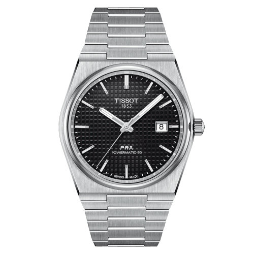 TISSOT/天梭 PRX系列 男士黑色表盘自动机械机芯银色精钢表壳表带腕表40毫米T137.407.11.051.00