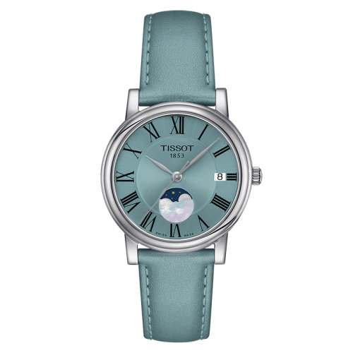 TISSOT/天梭 卡森臻我系列 女士浅蓝色表盘石英机芯精钢表壳皮革表带腕表32毫米T122.223.16.353.00